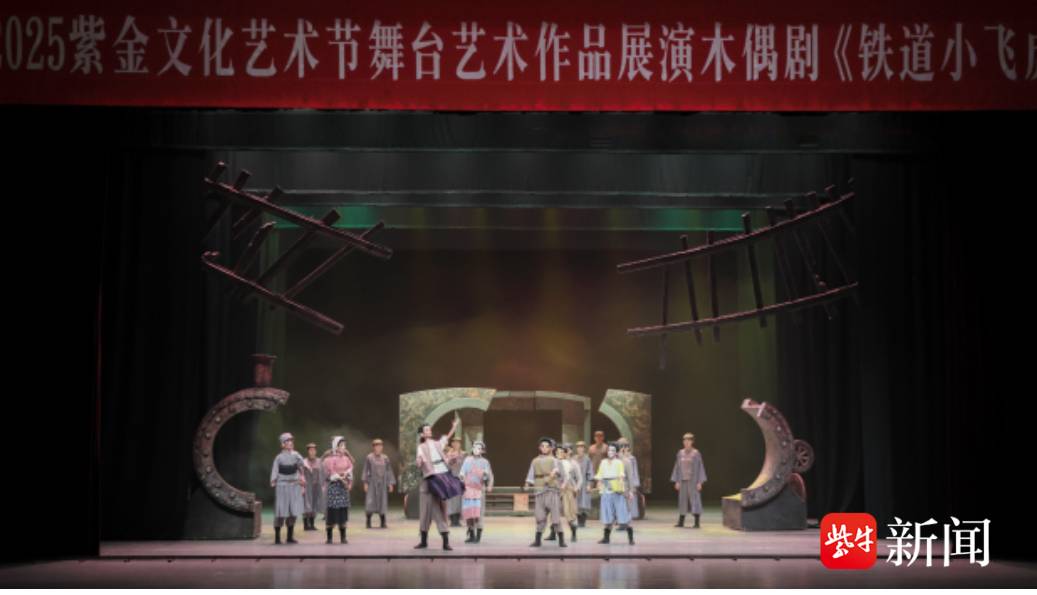 10月4日下午,作为2025紫金文化艺术节展演剧目,由扬州市木偶研究所创排的大型原创木偶戏《铁道小飞虎》在连云港市文化艺术中心大剧院精彩上演。方寸舞台之上,一个个灵动的木偶化身抗战小英雄,为现场观众,特别是青少年朋友们,讲述了一段发生在微山湖畔的烽火少年传奇。