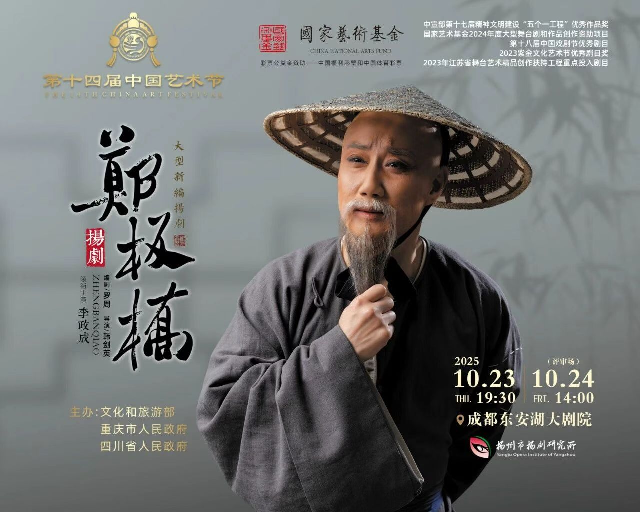 “四时不谢之兰,百节长青之竹,万古不败之石,千秋不变之人。” 扬剧《郑板桥》于2023年首演,演出后引起学界的关注。本剧以扬剧艺术为扬州八怪之首郑板桥立传写真。郑板桥客居扬州,卖画为生。后得县令之助,他应科高中,赴任山东。适逢饥荒,板桥怜恤百姓,放粮救灾,而后告老还乡,重回扬州。七十年踏遍红尘,郑板桥初心不改,在水墨之间,成就千古一人。导演韩剑英在保持戏曲本体特征和扬剧地方特色的基础上,运用丰富的艺术手法,着力塑造出一个“活的”郑板桥。本剧领衔主演李政成在谈及这部剧的创作时说这部剧的创作初衷是为一场文化自觉的“知行合一”,在创作方面希望以现代视角重构经典人物,在价值意义方面能够回应时代命题,传递普世价值。本剧将于10月23日到24日在成都东安湖大剧院演出。