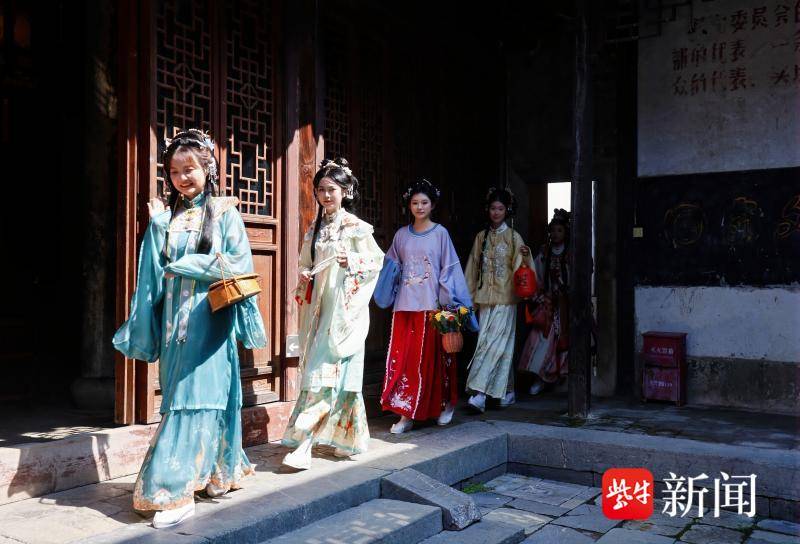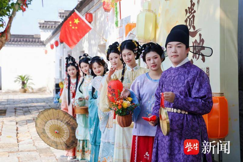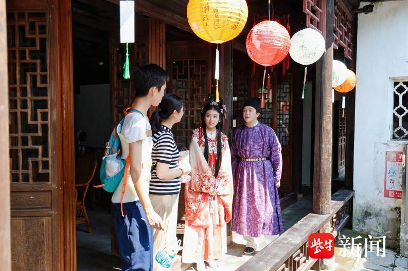 一群衣袂飘飘的明制汉服达人化身“古代贤士”“大家闺秀”,成为游园会上最亮丽的风景线。他们或执团扇漫步诗词长廊,带领游客穿梭于杨柳村“九十九间半”古建筑群。