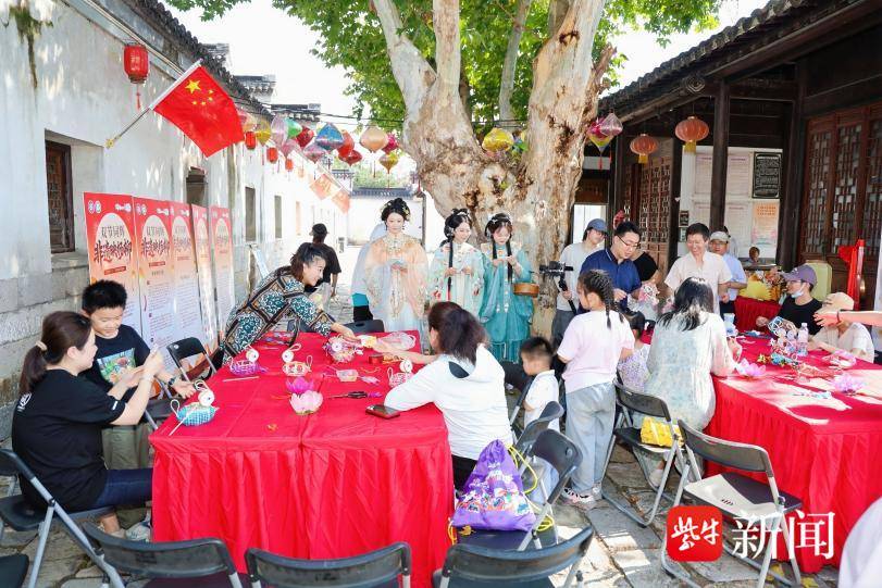 上午10点,江宁民俗博物馆门前广场已沉浸在节日的欢愉中,古色古香的院落里,非遗传承人手持竹篾与彩纸,向孩子们演示传统花灯制作技艺。