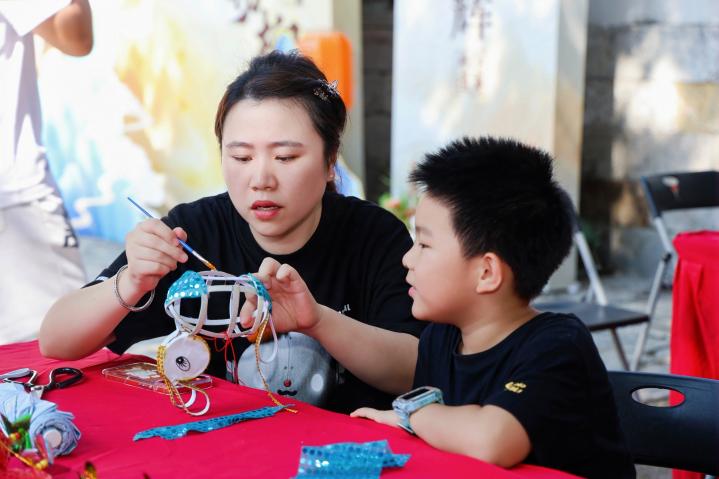 “先扎骨架再糊纸,最后画上吉祥图案……”匠人的讲解声与孩童的惊叹声交织在一起。家长与孩子共同动手,从搭建灯架到绘制花纹,一盏盏承载着祝福的兔子灯逐渐成形。