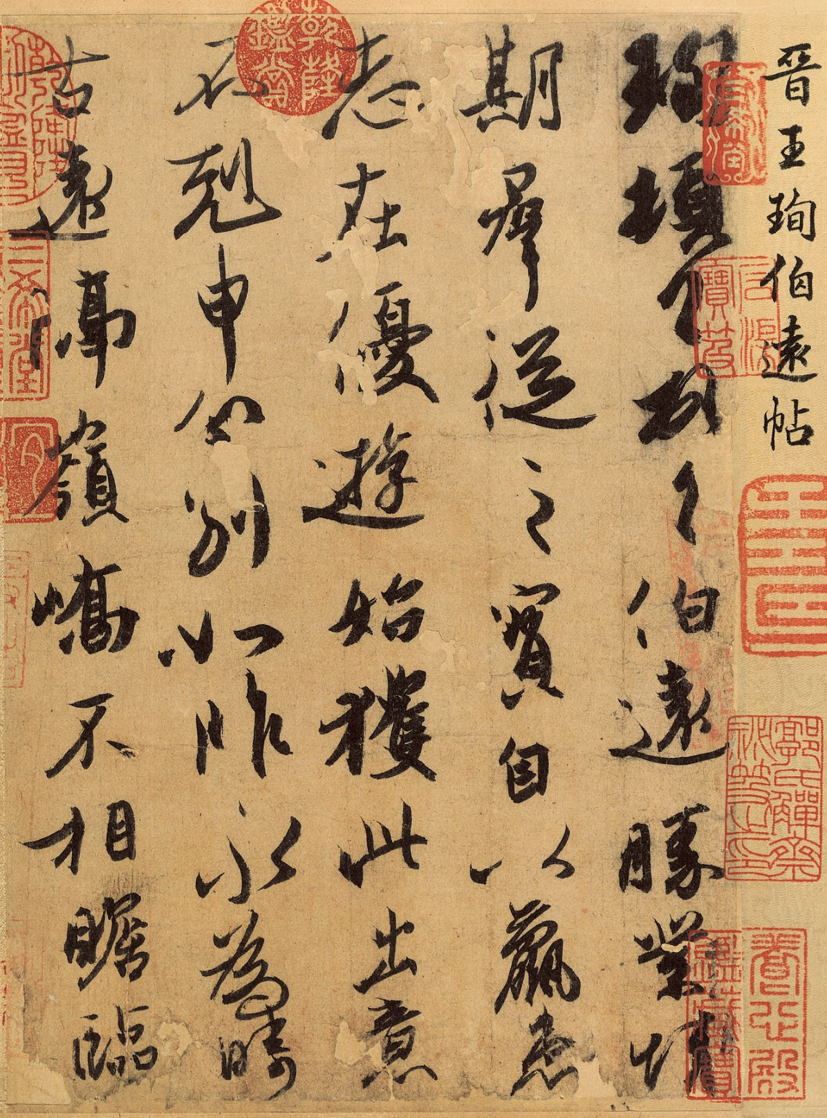 《伯远帖》是王珣的一封书信。王珣是东晋名相王导的孙子。他与弟弟王珉都是谢氏家族的女婿,但后来因为一些事情,两个家族“猜嫌致隙”,也导致他们各自离异。也就是这段时期,谢安想将王珣调任江西南昌,实则是试图将他逐出南京。王珣内心郁闷,所以写了这封信,倾诉心中不满。《伯远帖》字迹工整,转折分明,“潇洒古淡”,足见东晋时期的书法风采。