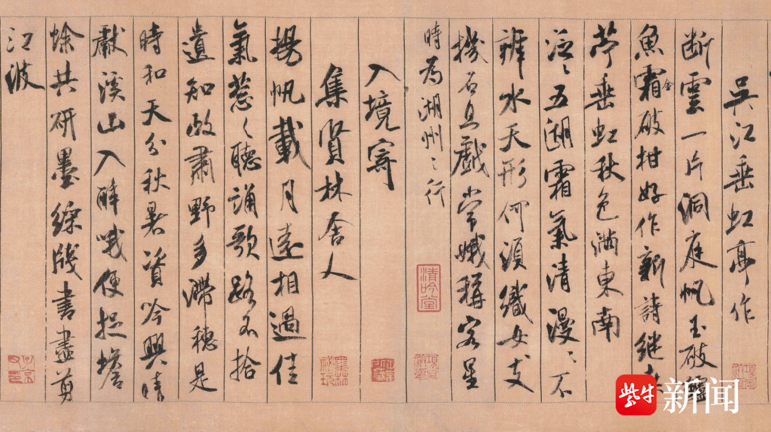 米芾在镇江(古称润州)生活了近四十年,是其艺术创作的重要时期。江苏著名书法家朱敏则将米芾书法风格的形成根源追溯到元丰五年。这一年发生两件大事:一是苏轼写下了“天下第三行书”《黄州寒食帖》,二是米芾造访苏轼。彼时苏轼点拨米芾,别再一味学唐人,要追“晋格”,也就是学二王。这在当时是很具开创性的学书方向,对米芾而言可谓醍醐灌顶。自此,米芾书法又是一变。