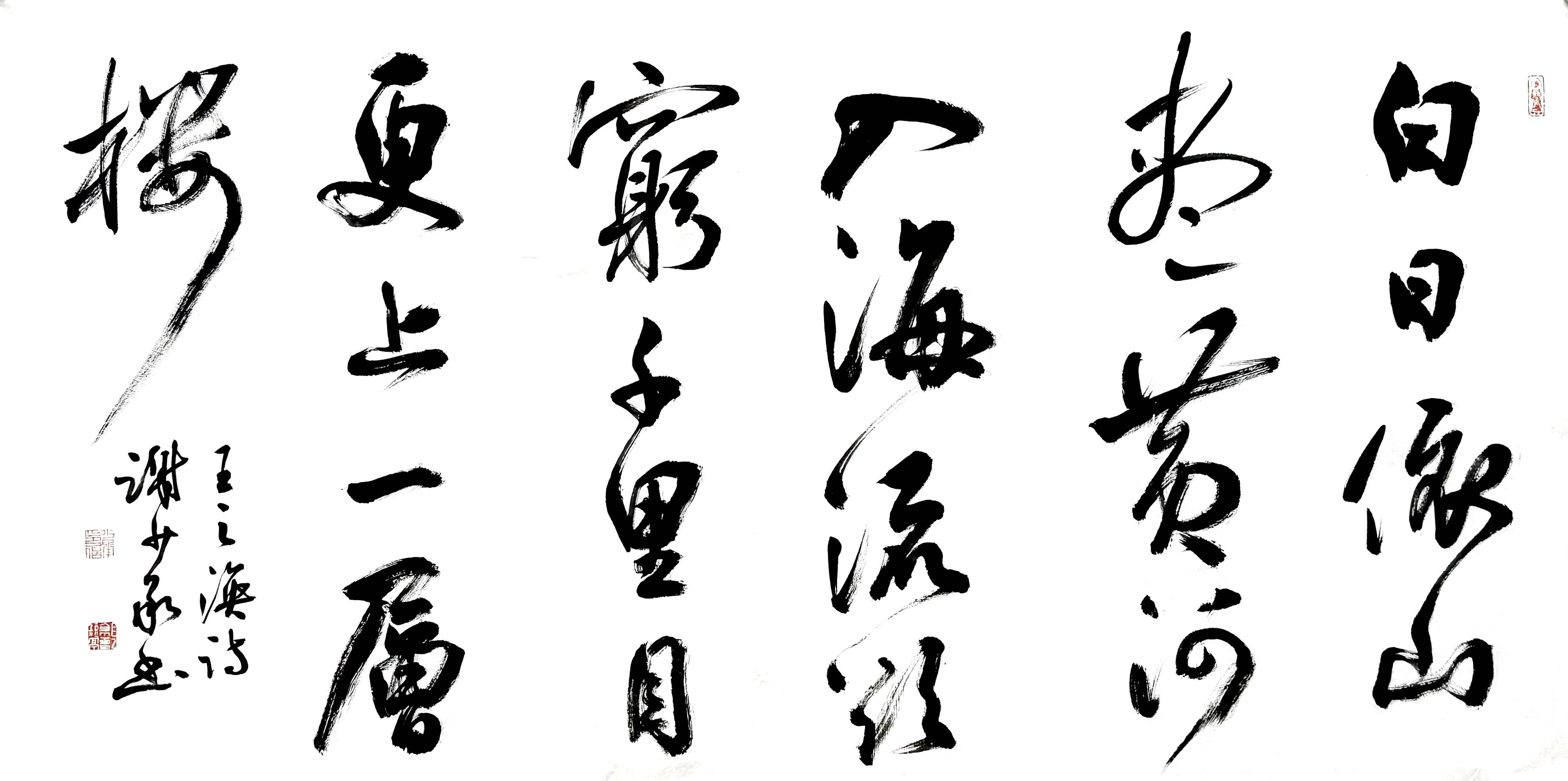 “白日依山尽,黄河入海流,欲穷千里目,更上一层楼”,著名书法家谢少承铺纸蘸墨,一气呵成,挥毫书就给“书超江苏”亚军队奖品。记者正欲喊好,他却端详了片刻,说“这个不行”。又重新铺纸,再度挥毫。想起有朋友说,曾亲见谢少承写一张撕一张,一直撕到了满意为止,不禁莞尔:这就是“完美主义者”谢少承,容不得一点点瑕疵。