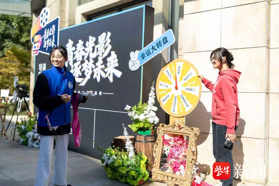 本次活动由江苏省电影集团组织实施,围绕把电影“种进校园”核心主题,为师生构建了一场“从开场到杀青”的完整电影之旅。现场市集“幻听片场”展区人气满满,复古留声机循环播放电影经典台词,专业录音设备帮助学生现场录制心仪片段,让大家近距离感受电影声音艺术的独特魅力;“造梦工坊”则推出黏土电影角色制作、DIY专属电影票根等互动体验项目,引导学生从“观影者”转变为“电影文化创作者”;“好戏集货”展区的电影周边产品,同样受到师生广泛青睐。