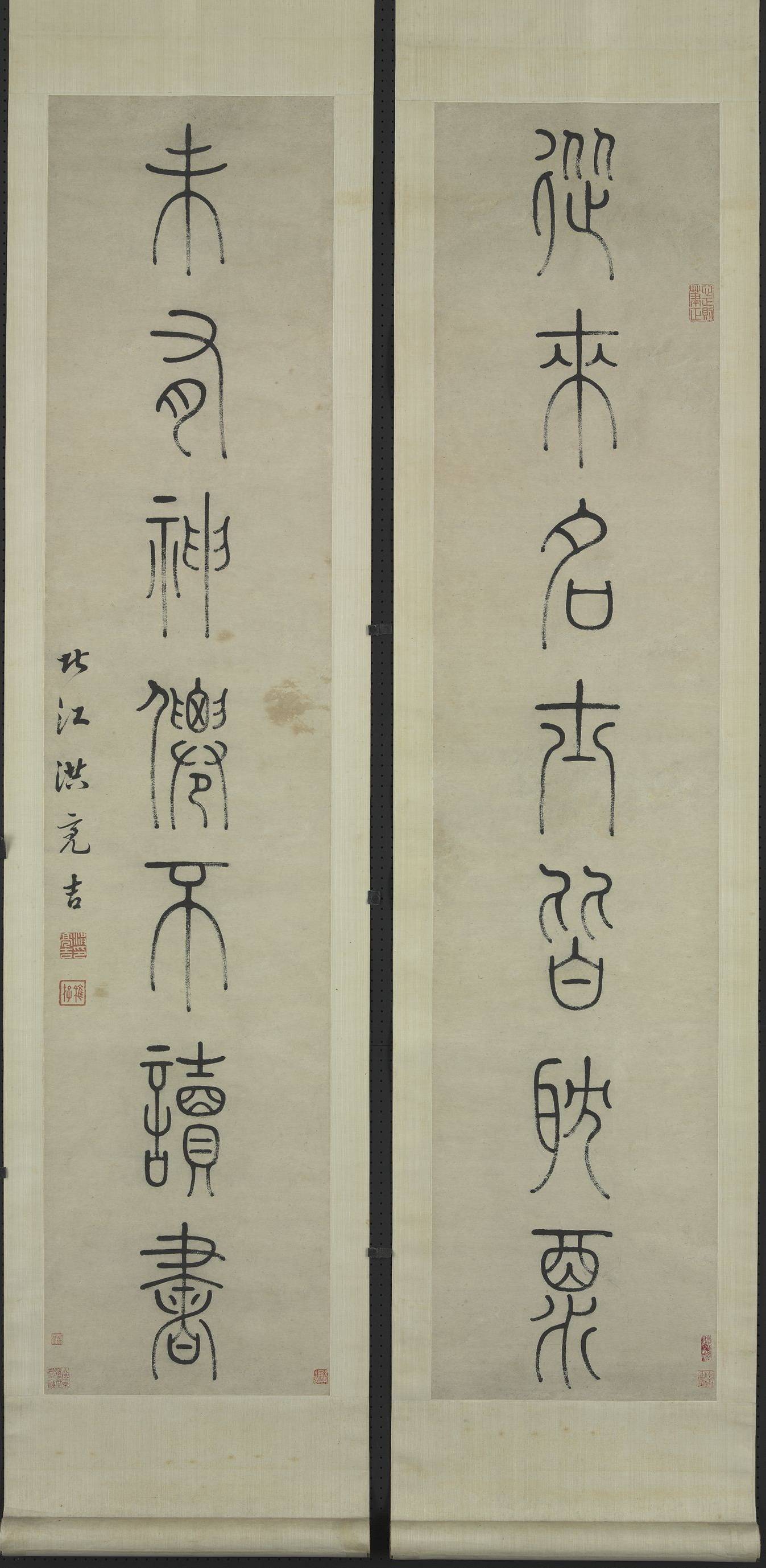 洪亮吉篆书七言联“从来名士皆耽酒,未有神仙不读书”