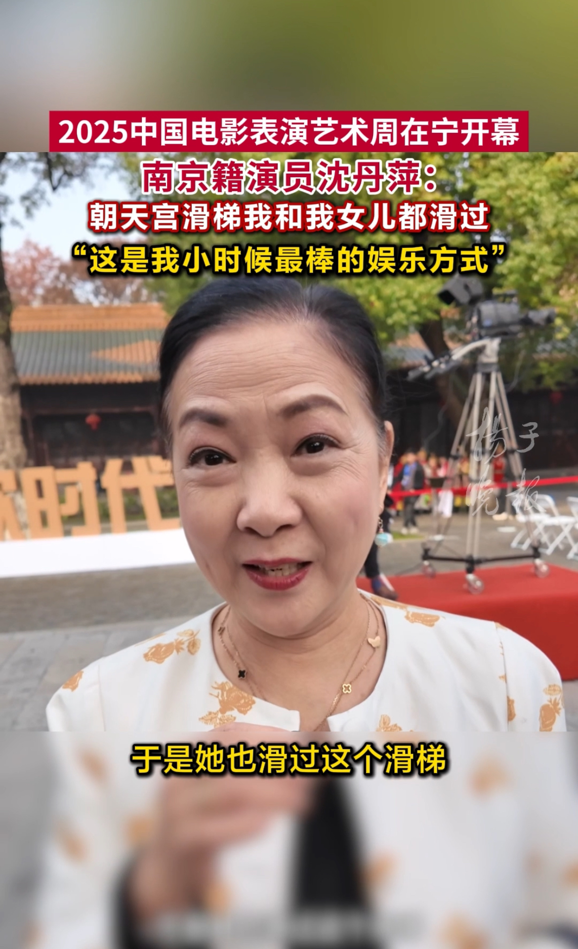 1日上午,2025中国电影表演艺术周在朝天宫举行开幕式,南京籍演员沈丹萍参加活动时看到了朝天宫棂星门前的“滑梯”, 很惊喜地告诉记者:“这个滑梯,我和我女儿都滑过,这是我小时候最棒的娱乐方式。”