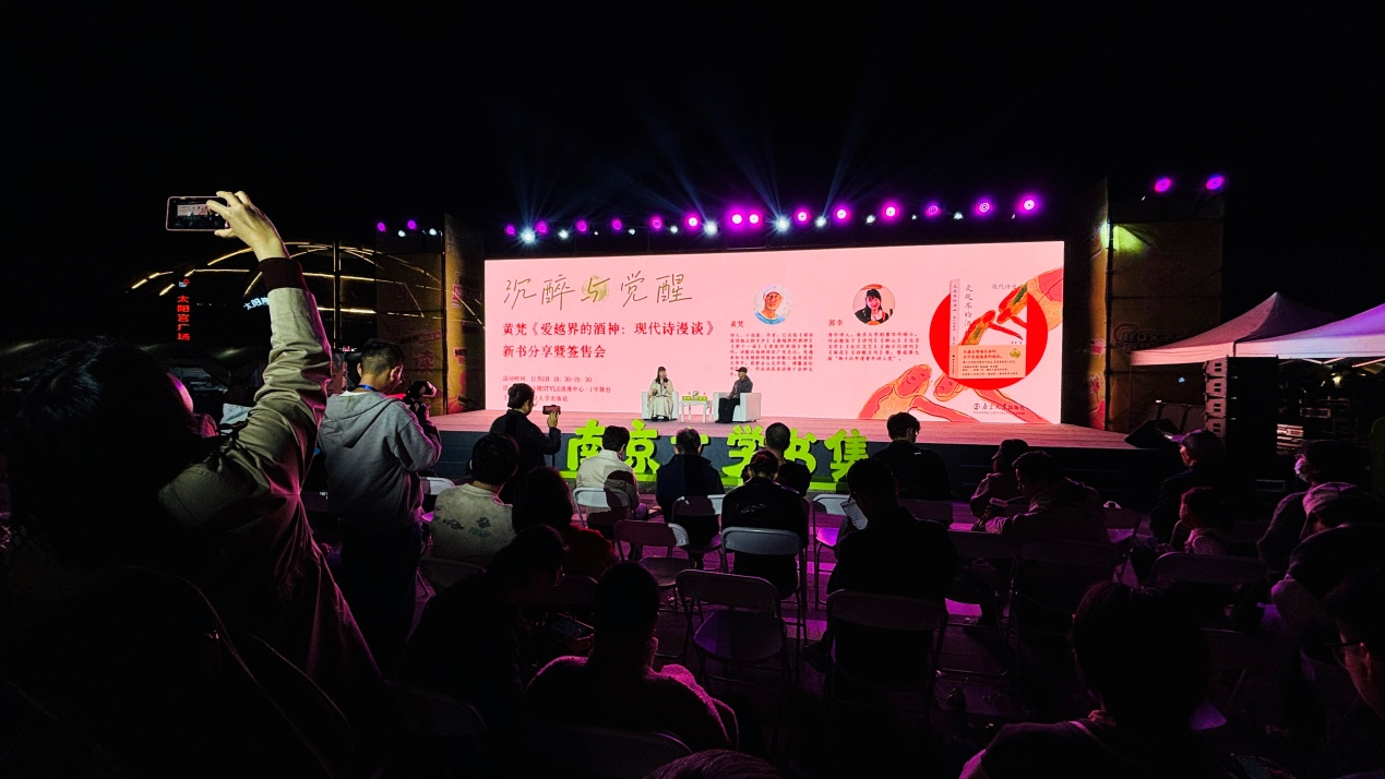 11月2日晚,黄梵《爱越界的酒神:现代诗漫谈》新书分享暨签售会在玄武湖畔举行。这场在“文学之都”南京的诗歌漫谈,作者黄梵与特邀嘉宾兼主持郭幸围绕现代诗的核心议题展开深度对话。两位嘉宾结合创作经验,解析现代诗的核心议题:方言写作的诗学价值与文化记忆留存,策兰式造词的借鉴与精神共振,《蛇》中隐喻重构的实践;也探讨了中国诗人内在的幽微原型,以及从中年写作转变看语言态度的调整。
