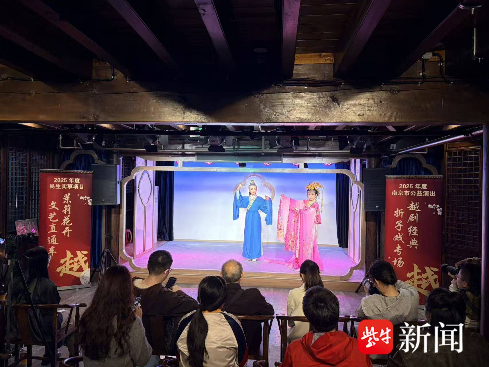 2025年11月7日晚,作为2025年度南京市公益演出、2025年度民生实事项目-“茉莉花开”文艺直通车的一站,《经典越剧折子戏专场》在老门东上演。这场别开生面的演出打破了传统的镜框式舞台,通过“暖场+演出”的沉浸式体验,为观众带来了一场全新艺术盛宴,让百年戏韵在金陵夜色中焕发出鲜活的生命力。