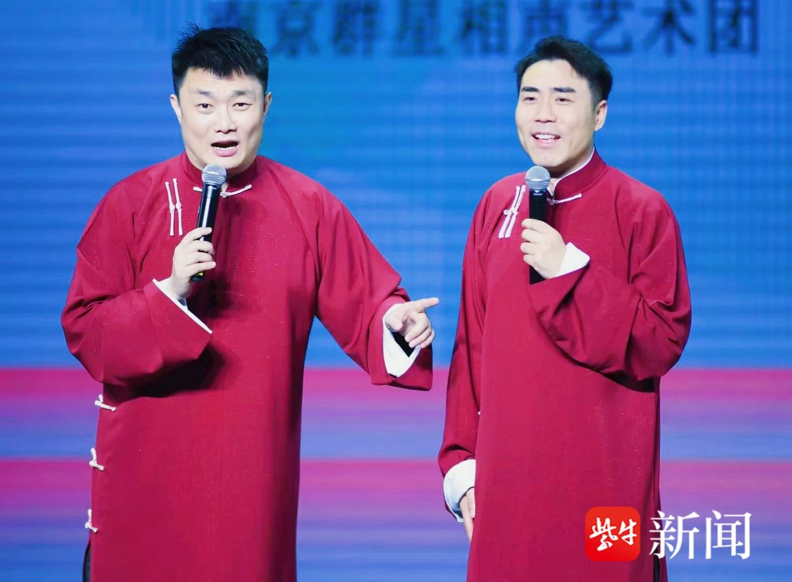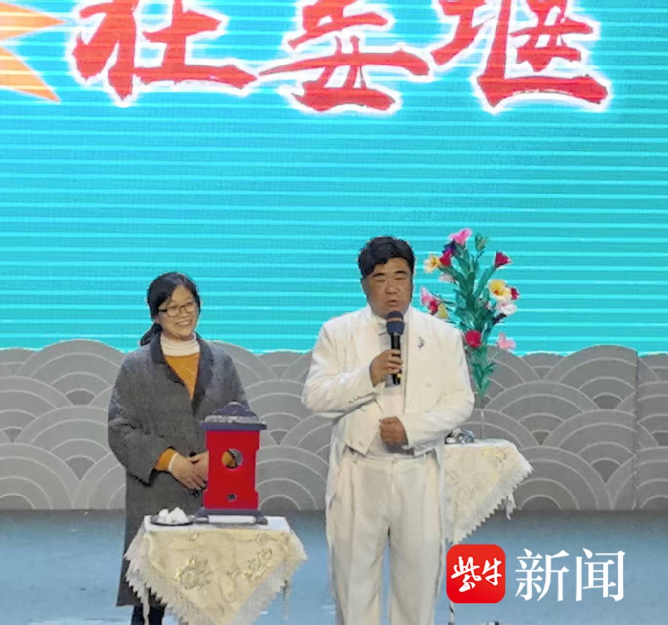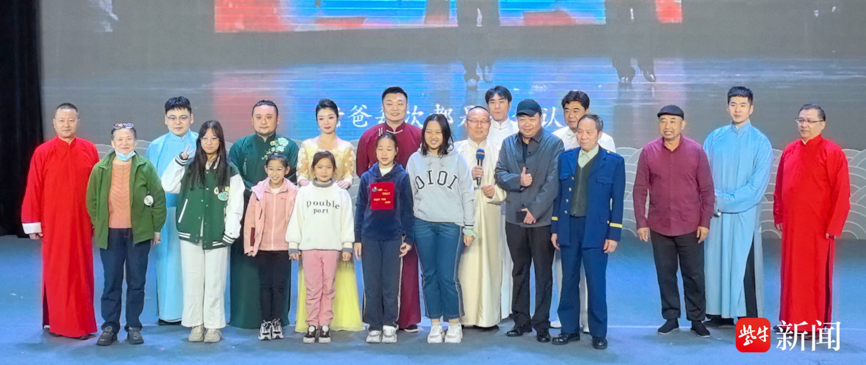 11月8日下午,有江苏“乌兰牧骑”之称的公益相声团队南京群星相声艺术团(倪夏班),携“2025欢乐姜堰行”文化惠民演出登陆姜堰区文化馆三水剧场。这场集相声、快板、魔术、歌唱于一体的视听盛宴,既为苏超夺冠热潮再添喜气,也向一线记者送上祝福,让千年水乡的秋日漾起满堂欢笑。