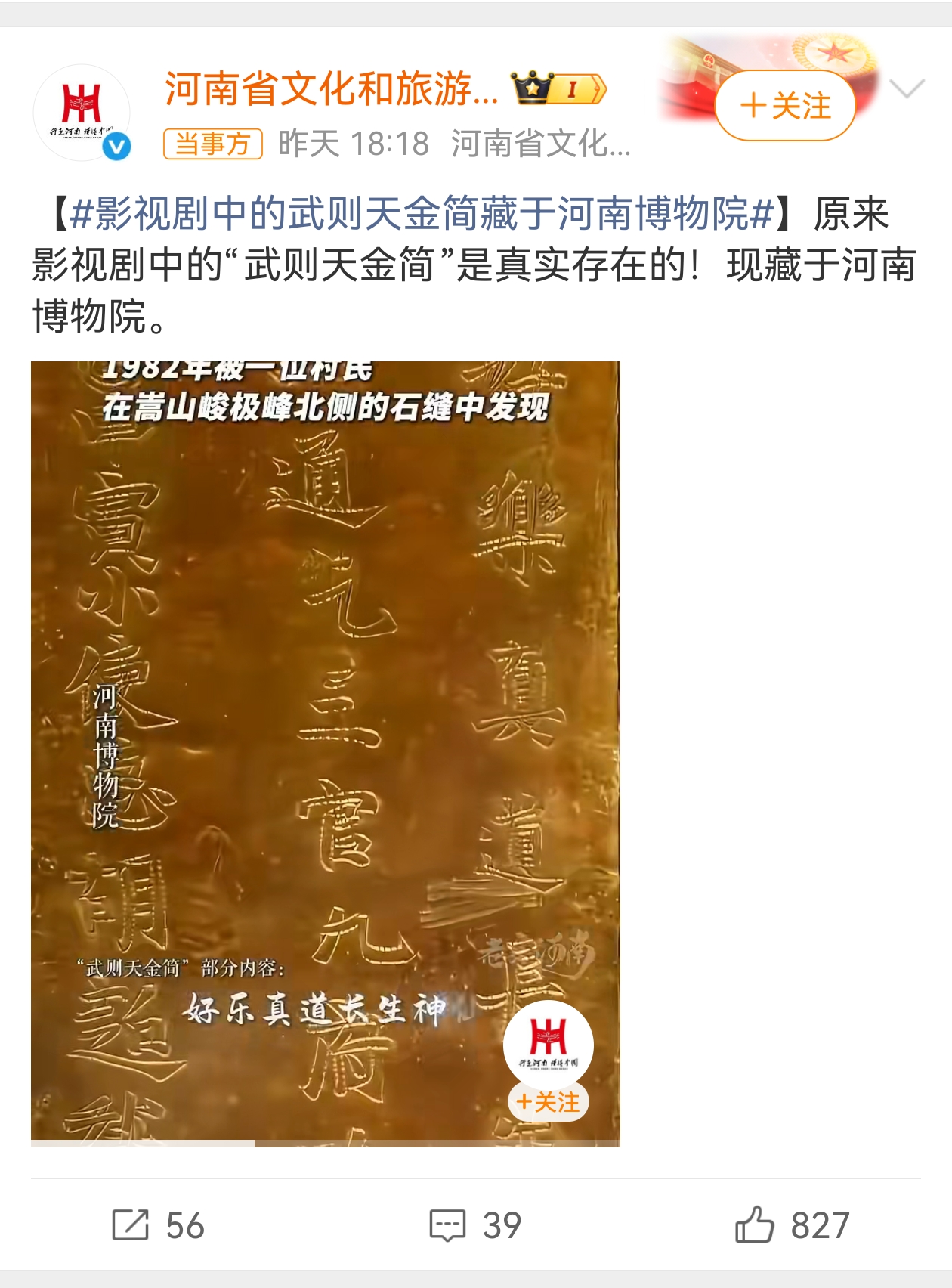 在古装悬疑剧的创作中,历史文物往往是勾连虚实的绝佳纽带。河南省文旅厅近日发微博认证,正在热播的《唐朝诡事录3》便捕捉到这一创作密码,将河南博物院镇馆之宝——武则天金简化作推动剧情的核心线索,在第九集成佛寺案中掀起层层波澜。这枚承载着历史厚重感的文物,既成为揭露阴谋的关键证据,更以“真实原型+虚构剧情”的叙事手法,让朝堂权斗、民间奇案与历史底色形成奇妙共振,构建起极具张力的故事肌理。