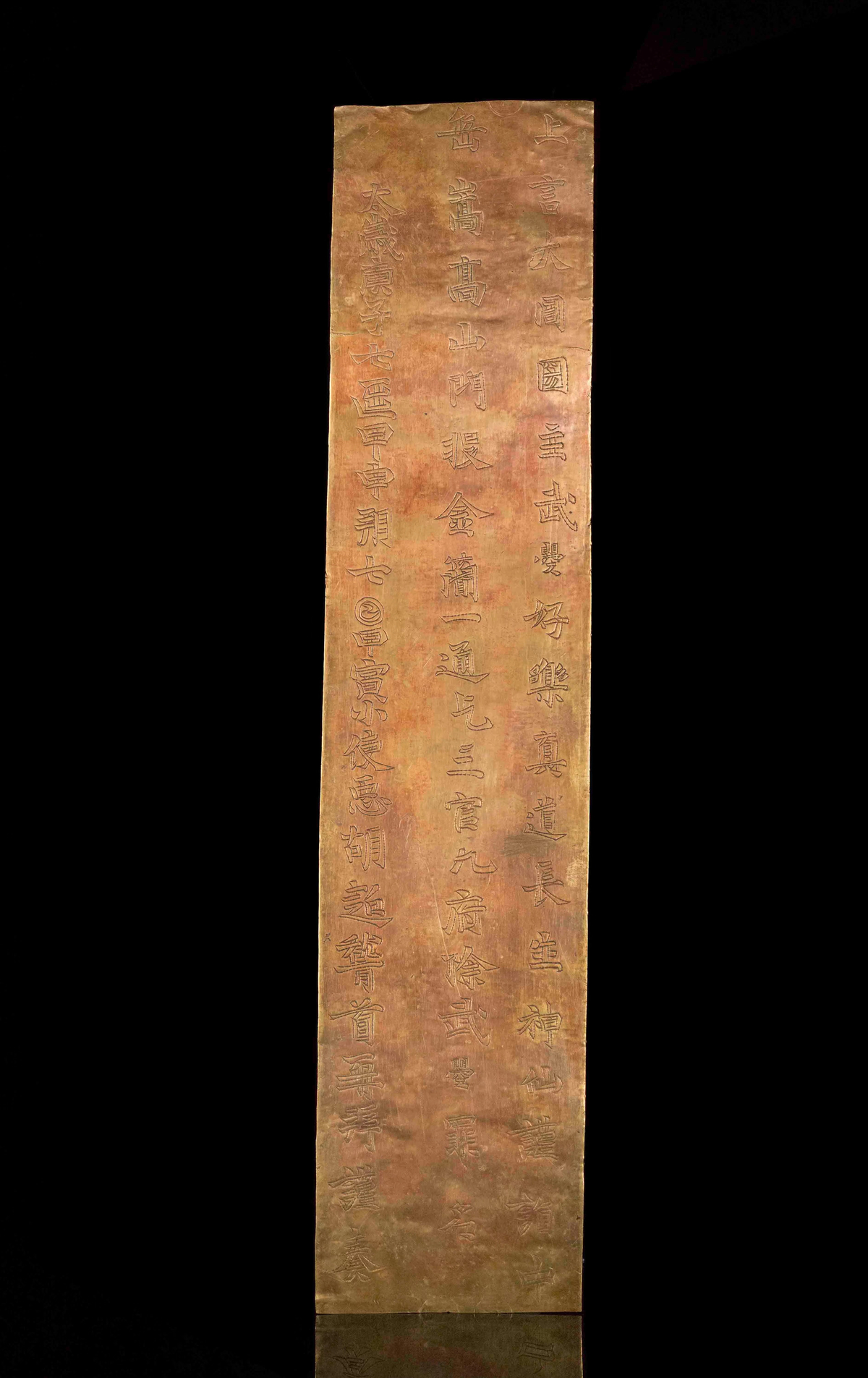 剧中金简的厚重感,源自其真实可考的历史原型。世所罕见的武则天遗物直到今天依然灼光灿灿,1982年的登封县嵩山峻极峰,当地农民在山间发现了一枚金简。它造型规整,整体无纹饰,却刻字精美,排列整齐,以娴熟的平錾手法点刻成字,均匀紧凑,宛如墨书,表现出极高的制作工艺水平。