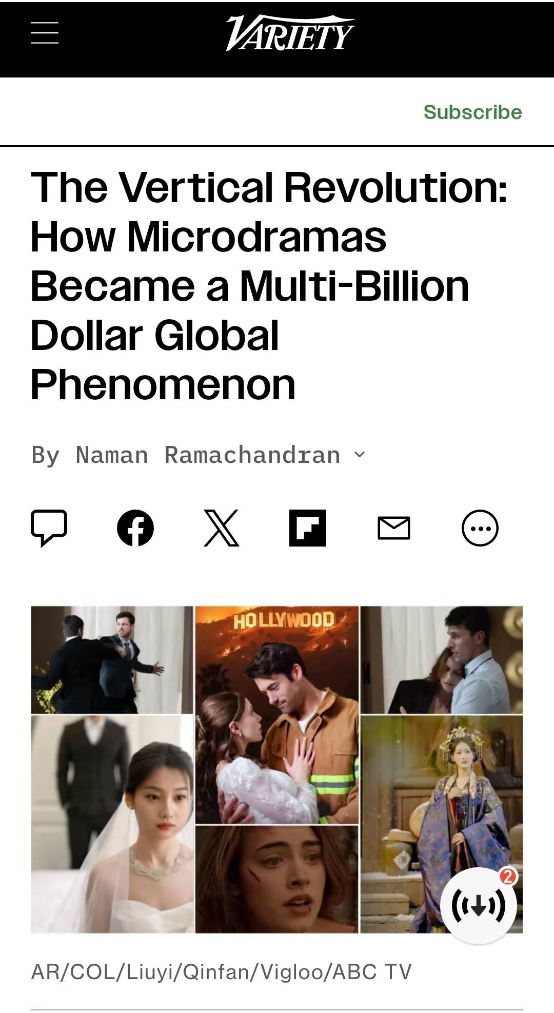 “但中国早已证明事实恰恰相反。在Quibi崩盘之际,一种全新模式正在悄然兴起——它不依赖好莱坞明星效应或高端制作水准,而是凭借数据驱动的迭代优化、平台深度整合,以及改编自网络小说的成瘾性系列叙事,这便是‘短剧’(duanju),这种短剧形式到2024年已在中国创造数十亿美元营收。”中国的生态系统展现了内容与社交媒体、支付基础设施深度融合的巨大潜力。