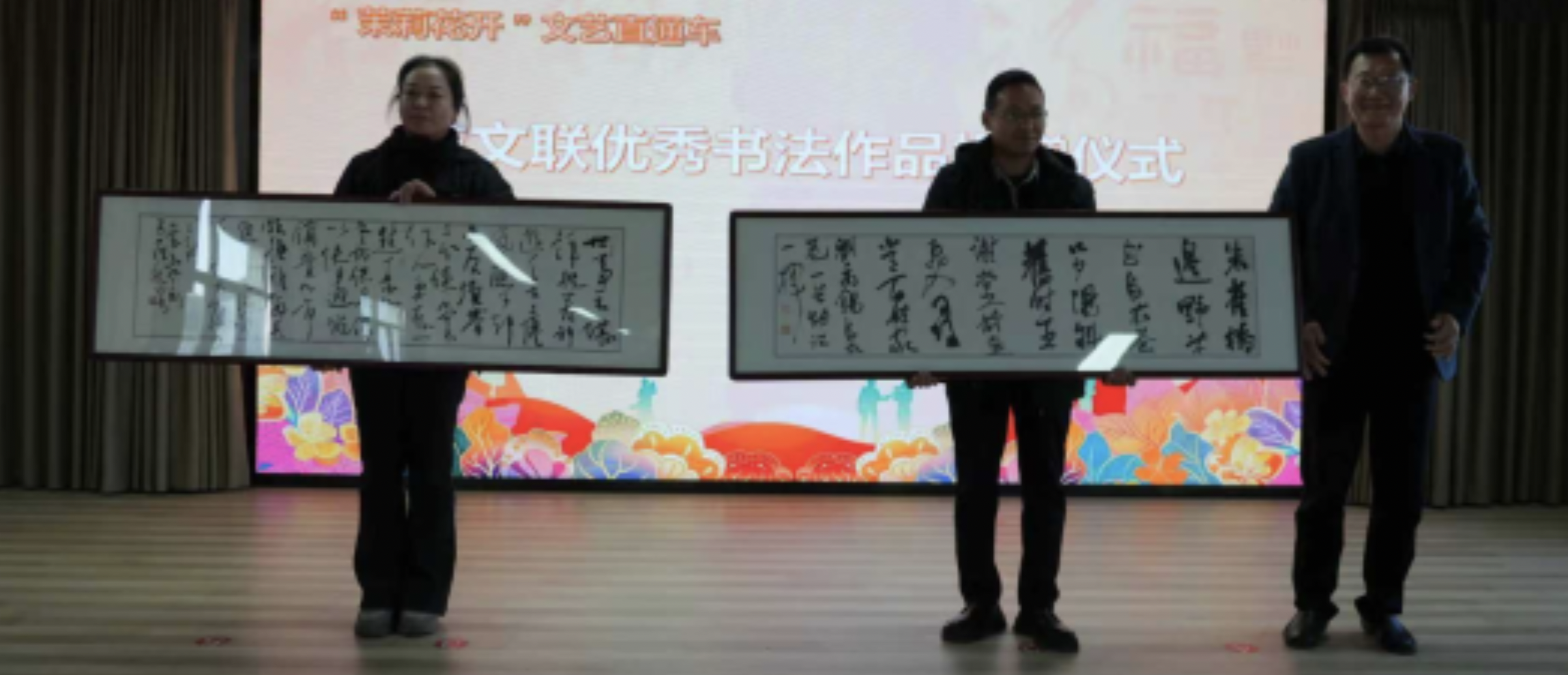 与此同时,温泉镇“茉莉花开”暖“香”融融。在温泉镇新时代文明实践所,省作协为10名留守儿童送上“成长大礼包”,文具与书籍里藏着对孩子们的殷切期许;市文联则向温泉镇与碱场村捐赠了寓意深远的书法作品,为基层注入浓厚文化气息;温泉镇“群众阅读空间”揭牌启用,这个由省作协助力搭建的“免费书房”摆满了图书,不仅是村民读书的好去处,更成了文化交流的新平台。“以后饭后能来这儿看书,还能和邻居聊文化,太方便了!”村民李红面对这样的场景,难掩期待。