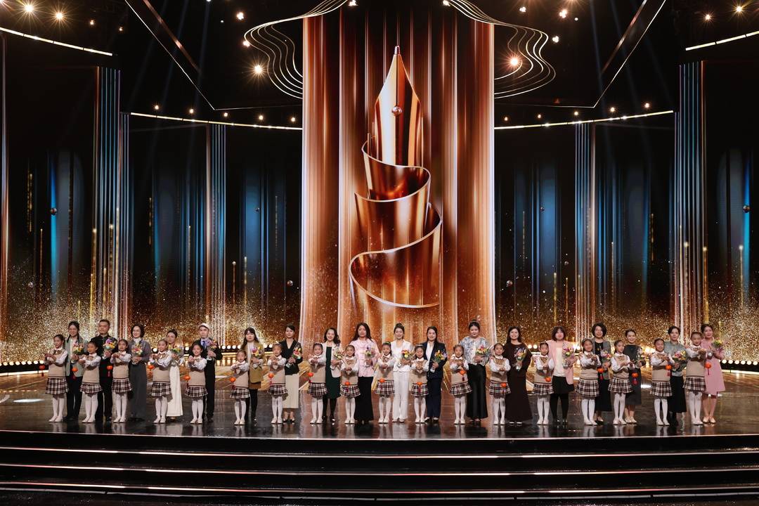 盛典还通过非遗皮影展现《鸬鹚》《木兰诗》《小橘灯》等经典课文,非遗皮影与课本经典的创意结合让观众眼前一亮。舞蹈《瓷影》则以柔美而灵动的舞姿展现中华文明在传承与创新中的永恒生命力。胡海泉演唱的《用尽我的一切奔向你》配合儿童文学作家群像短片,深情诠释了创作者们的初心与坚守。在盛典尾声,万茜和来自甘肃临潭县的小读者以及芒果少年合唱团共同演唱《最好的未来》,在温暖的旋律中,深情传递出对每个孩子的期许:在儿童文学的陪伴下,每个孩子都能拥抱属于自己的“最好的未来”。