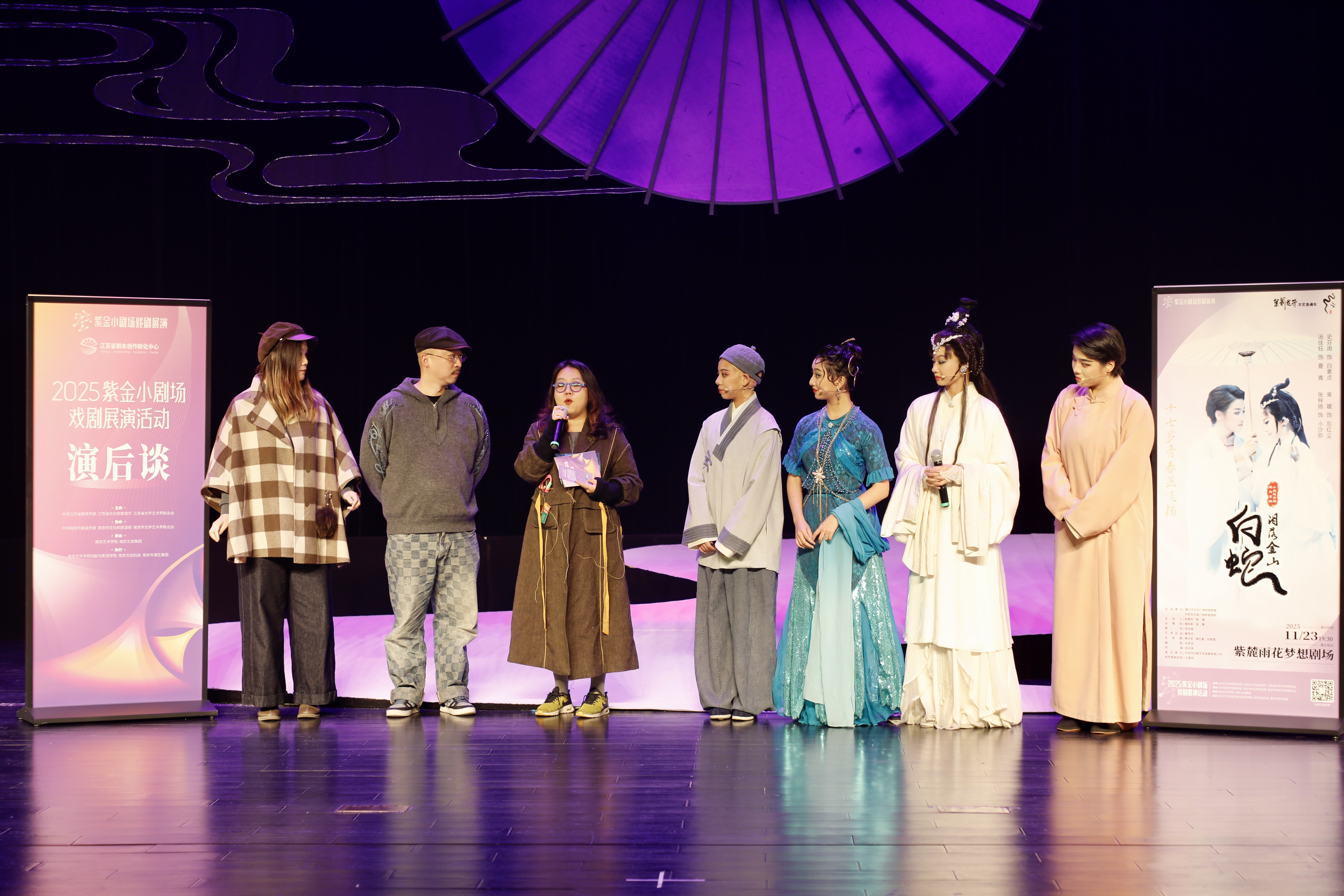 11月23日晚,作为2025紫金小剧场戏剧展演活动的首场演出,丹剧《白蛇·泪落金山》在紫麓雨花梦想剧场精彩上演。一个前所未见的“白蛇故事”——白素贞穿越时空,与转世为剧作家的许仙、化身电影明星的青蛇、作为法海后人的小沙弥重逢。