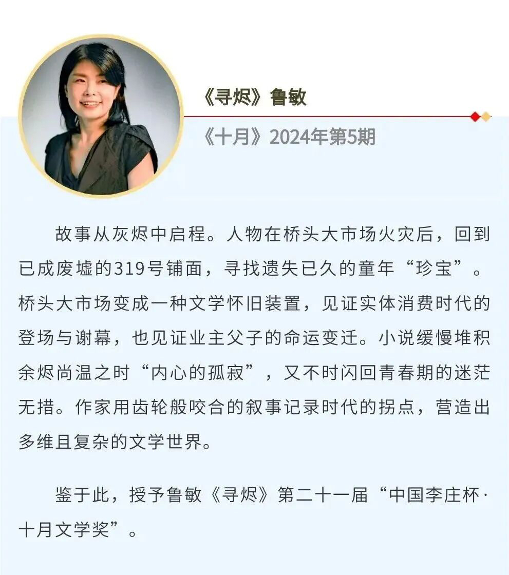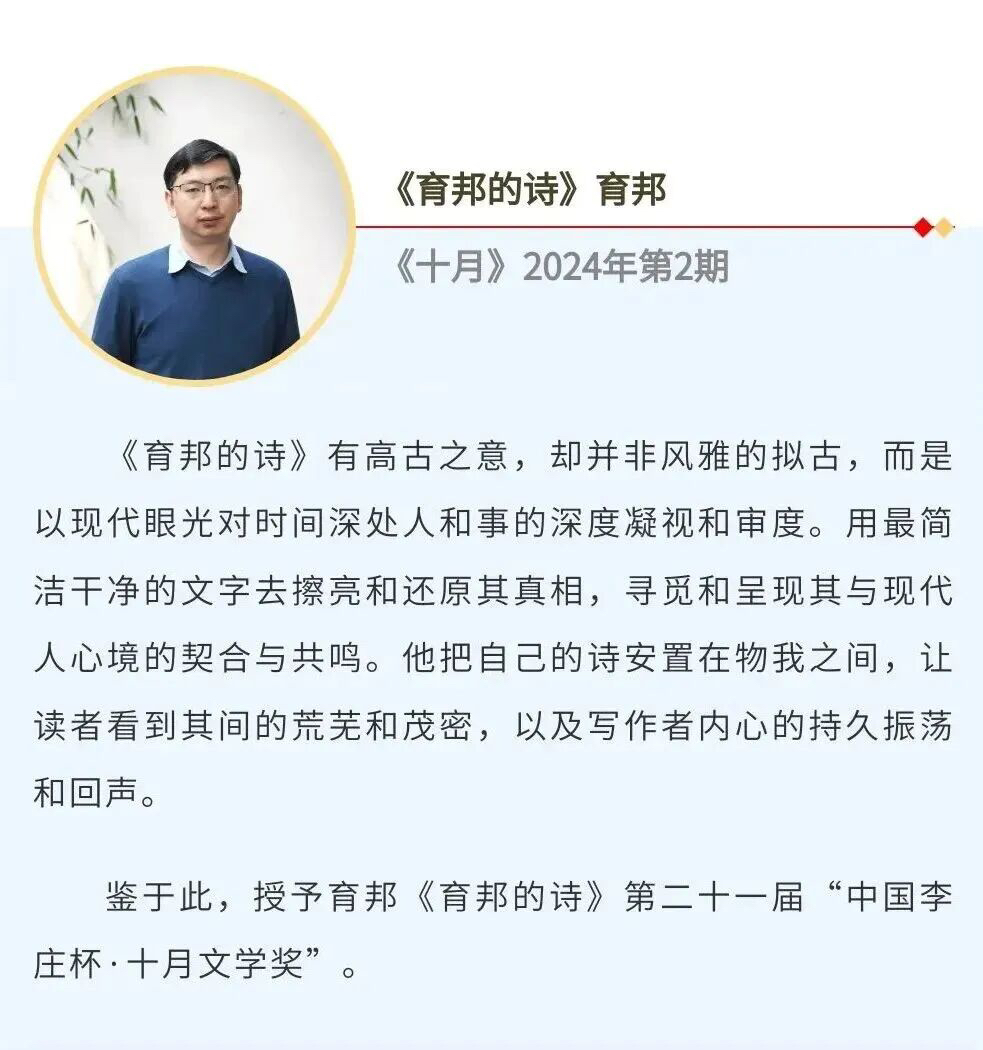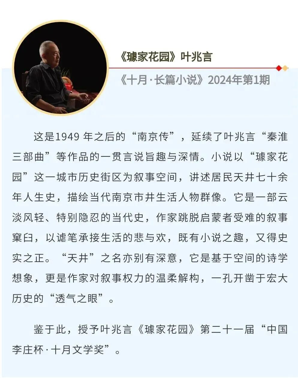 第21届十月文学奖揭晓,江苏作家叶兆言、鲁敏、育邦、汤成难获奖