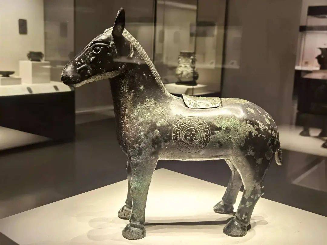 “骐骐”的原型西周盠驹尊现馆藏于国家博物馆,这件文物1955年出土于眉县杨家村,高32.4cm,通长34cm,是一匹非常可爱的小马驹。驹尊昂首挺立,身躯短小,腰部平展,颈部斜伸,剪鬃立耳,矮足短尾,神态憨稚,形象生动逼真。背部开方口,有兽钮盖,腹部中空用以盛酒。器表装饰极为简洁,仅在腹两侧和盖钮上装饰涡纹和云纹组成的圆形漩涡。整器相当准确地再现了小马驹的全身比例和身体结构,显示出周代工匠的高超技艺。