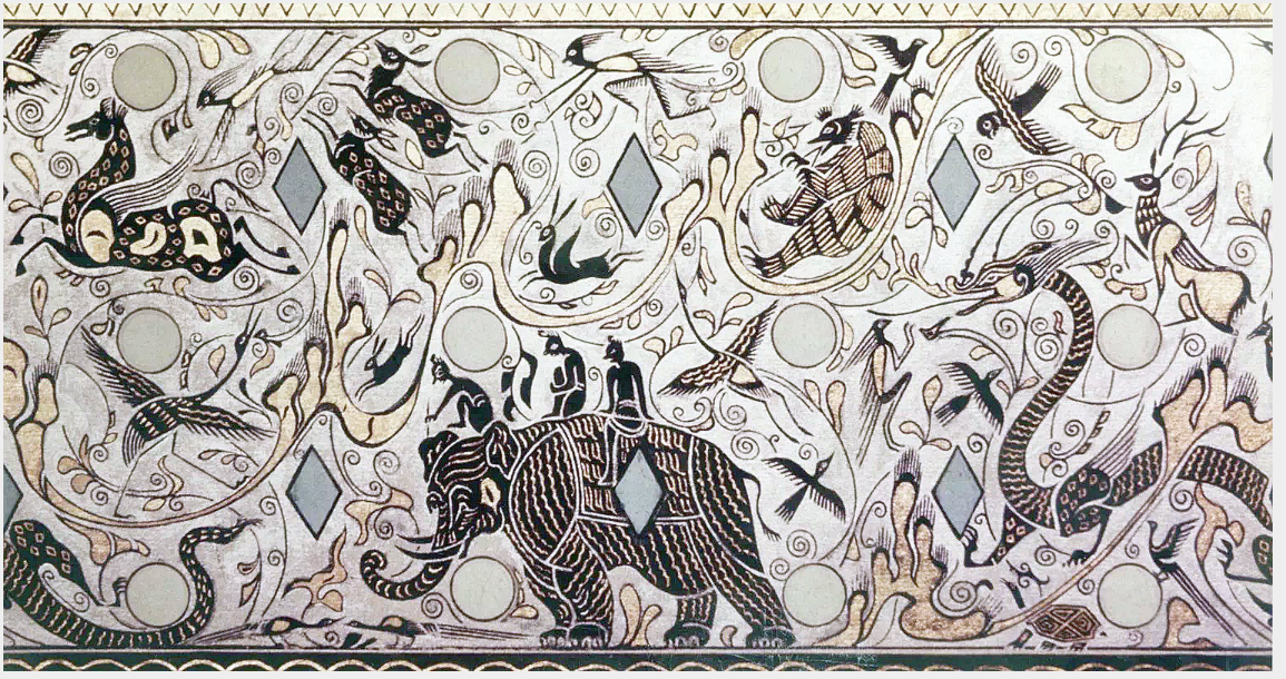 错金银镶松石狩猎纹铜伞挺部分纹样