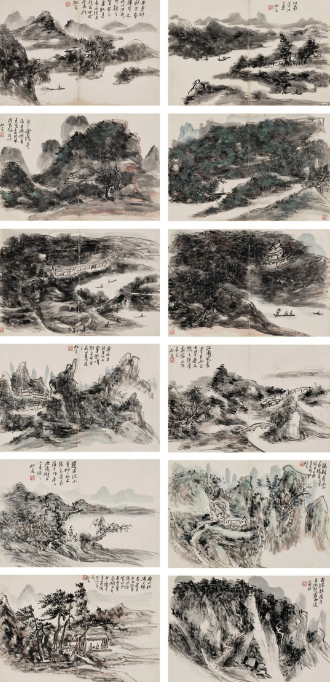 2025西泠秋拍黄宾虹(1865~1955) 为陈大羽作 冰上鸿飞山水册
