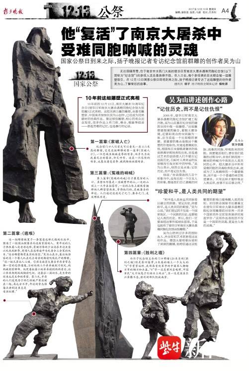 对这段历史的敬畏,早已融入吴为山的日常。“有一次下雨天,我还在纪念馆遇到了南京大屠杀幸存者夏淑琴。”自1982年求学南京起,每逢清明,他总会前往纪念馆祭扫遇难同胞;组雕落成后,他更常陪同友人、国际来访者乃至日本同行前来凭吊,以雕塑为媒介,向世界讲述这段不容忘却的历史。