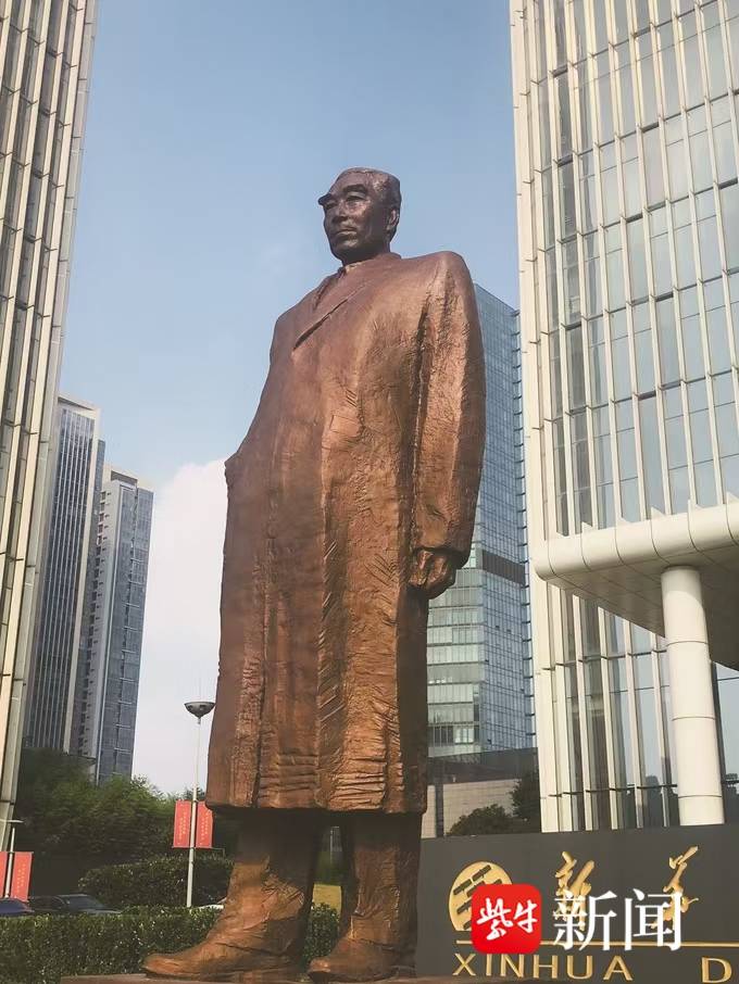雕塑背后便是高耸的新华报业传媒集团大楼,如何让作品气质与建筑风格相得益彰?多次为周恩来总理塑像的吴为山,最终以简洁洗练的手法摒弃琐碎细节,凝固伟人的精神风骨,使雕塑与大楼向上的势态浑然一体,尽显周恩来的崇高风范。“我们还在大楼周边创作了报业史上重要人物的雕塑群,以此展现《新华日报》的红色基因、可歌可泣的发展历程,以及在党的领导下砥砺前行的足迹。”