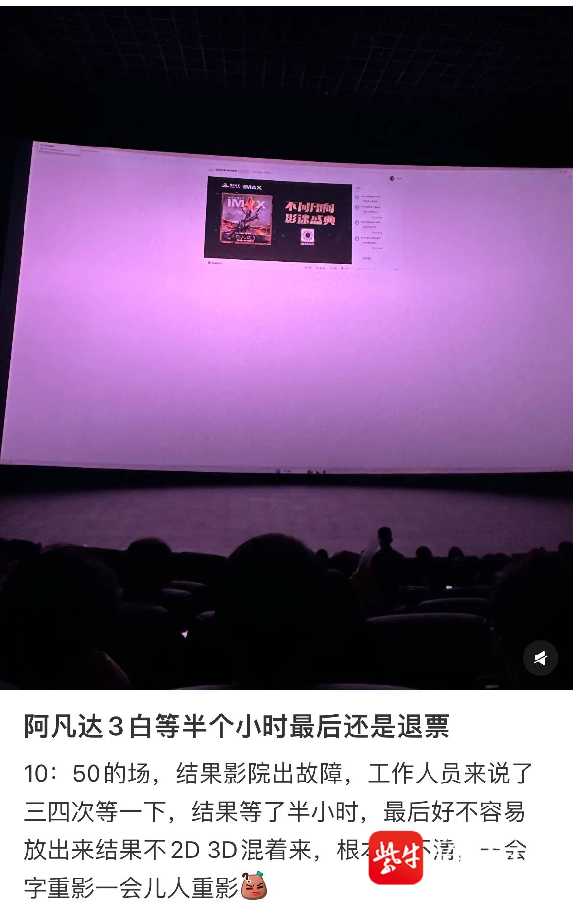 记者注意到,2022年《阿凡达2》上映首日,多地影院就出现过放映故障,故障类型包括画面黑屏、重影、声音画面不同步、画面抖动或完全无3D效果等,部分场次因技术问题被迫中断或提前退票。
