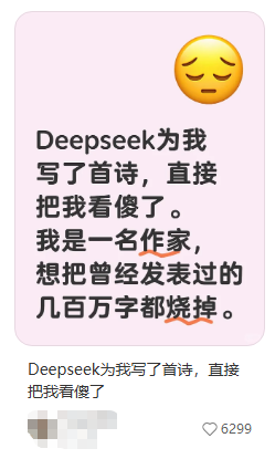 人工智能的发展带来了多面的影响,对文学和出版业产生巨大冲击在意料之中。2025年年初,deepseek横空出世,旋即在社交平台上掀起了deepseek创作热潮,其生成的诗歌、小说极大的震动了文学圈,《星星》诗刊主编、诗人龚学敏年初在朋友圈发文说:“AI已给诗歌创作带来前所未有的挑战。我不知道现在的诗歌是不是进入了末路,但是,现阶段的AI已经强大到我们太多太多的写作已经毫无意义了。”