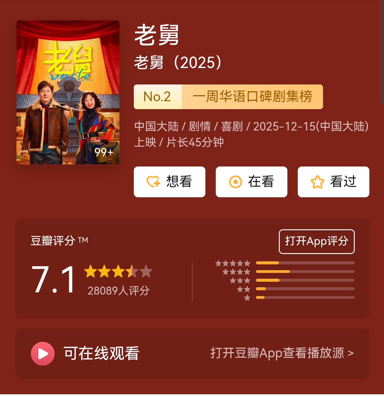 《老舅》的口碑起伏,本质上反映了当下观众对年代剧的更高要求:既要还原时代质感、传递情感温度,也要保证剧情逻辑自洽、角色成长连贯。