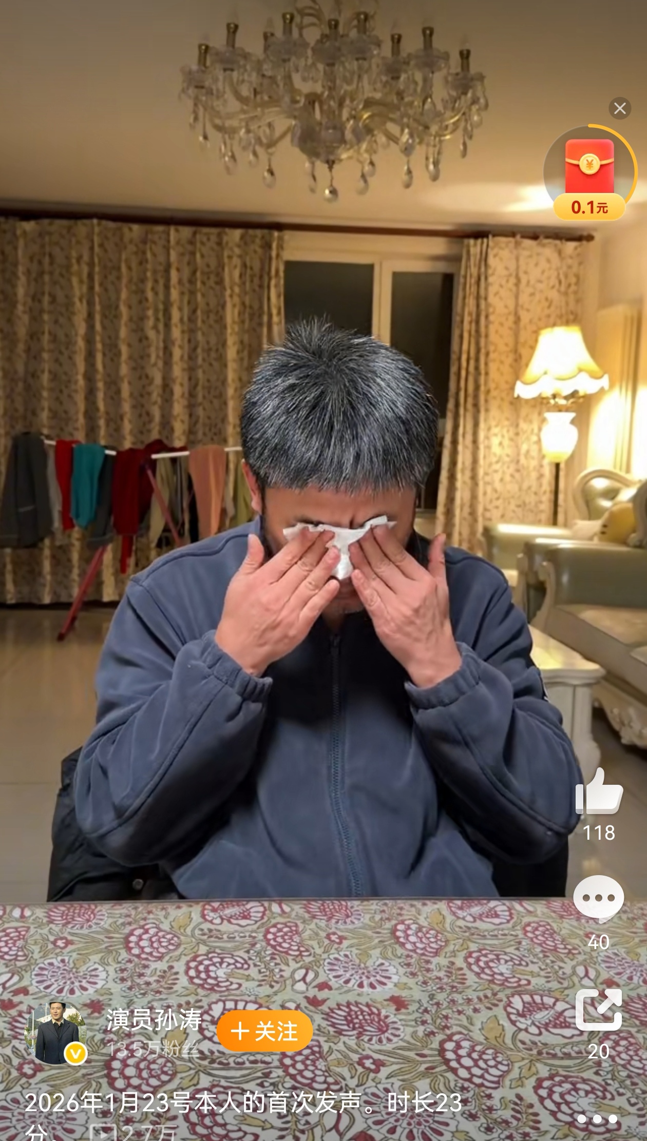 直播最后,孙涛承诺未来将专注演艺事业,不涉足直播带货,同时向观众送上新春祝福。