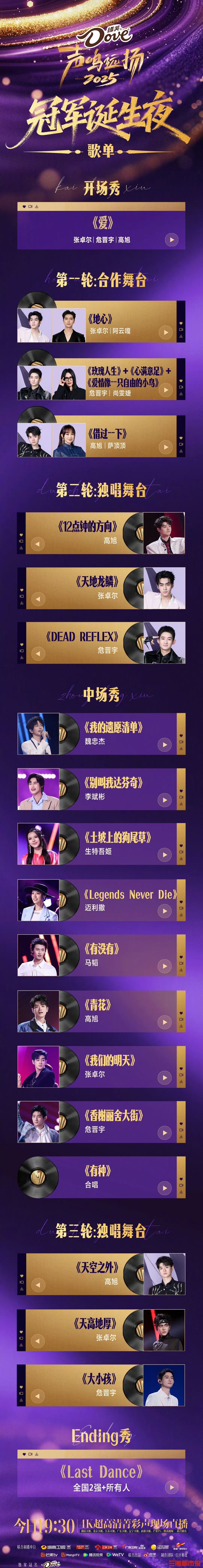 值得一提的是,今晚不仅是终极荣耀的诞生之夜,也是一场盛大的毕业典礼,魏忠杰、李斌彬、生特吾姬、迈利撒、马韬、高旭、张卓尔、危晋宇八位选手再次唱起曾在这个舞台上唱过的歌曲,这是他们写给所有人的回信,从《声鸣远扬2025》出发,他们将继续奔赴人生的下一个璀璨舞台。