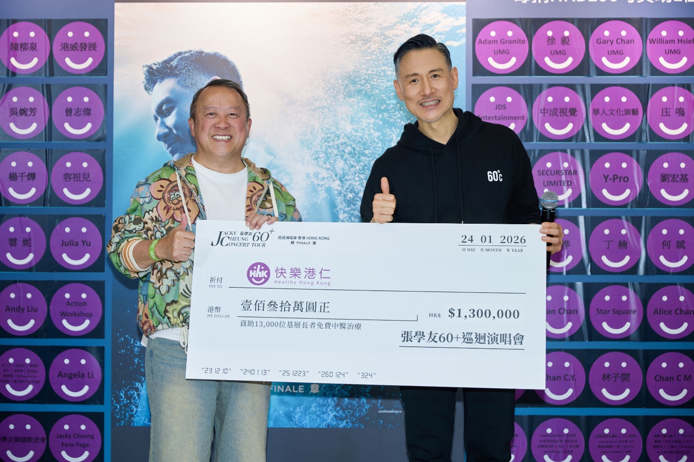 演唱会后,学友与一众赞助商及主创团队主持祝酒仪式,今次演唱会将所有朋友送赠的花篮转为善款,合共捐出130万予慈善机构“快乐港仁”,由曾志伟代为接收支票。志伟指学友很有善心,每年都会做得多慈善。而学友也透露不想休息太久,并透露下一个计划是筹备制作音乐剧。
