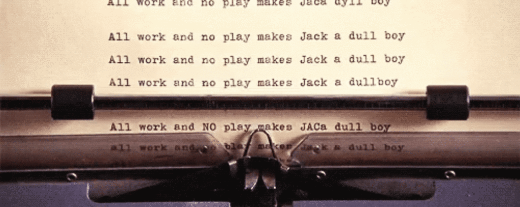 而片中,打字机上反复出现的那句“All work and no play makes Jack a dull boy”(只工作不玩耍,聪明杰克也变傻)的台词,则成了现代人被工作压垮导致精神崩溃的经典表达。