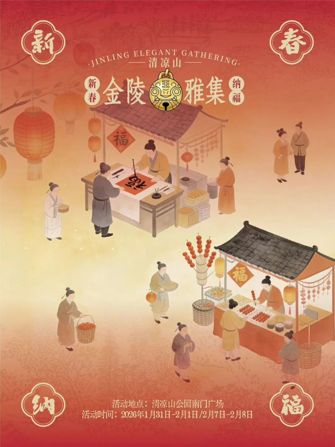 春启金陵,福满石城!一场融合非遗、书画、花香与年味的金陵雅集,今日在清凉山拉开帷幕!迎新活动精彩纷呈,不管你是爱打卡、爱手艺,还是爱逛爱吃爱拍照,这儿统统能满足你~