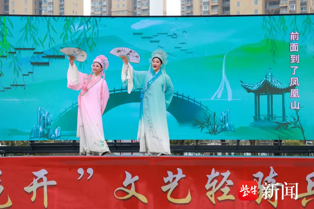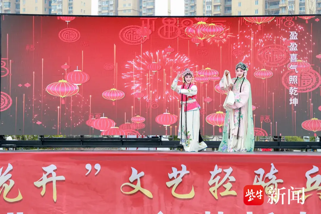 文艺演出环节精彩纷呈。扬州市曲艺研究所带来的扬州清曲《又见茉莉花》,以悠扬唱腔再现江苏文化符号,拉开了演出序幕。接下来的微型曲艺剧《“苏超”来了》,传统与现代结合,文艺与体育交织,碰撞出别样国风韵味。武术表演《武动童年》中,来自句容市天王中心小学的少儿武者以饱满的热情、标准的招式,展现少年意气风发,将现场气氛推向了高潮。由戏剧名家组成的文艺志愿者小队带来了戏曲联唱,越剧《梁祝·十八相送》、京剧《智取威虎山》选段、扬剧《新春观灯》等经典桥段轮番上演,让现场戏迷过足瘾,赢得阵阵掌声。演出在歌舞《春风十万里》中圆满落下帷幕。