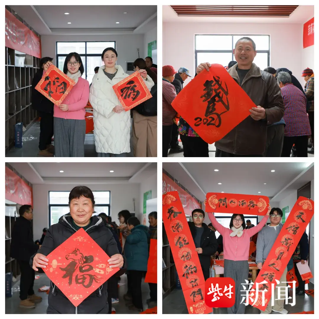 现场的“迎新春”集市上,人头攒动,气氛热烈,欢声笑语不断。十三位书法志愿者现场挥毫,书写春联和“福”字,将新春的美好期许凝于笔端。接过春联和“福”字的群众脸上洋溢着幸福的笑容,直呼这是最贴心的新春祝福。