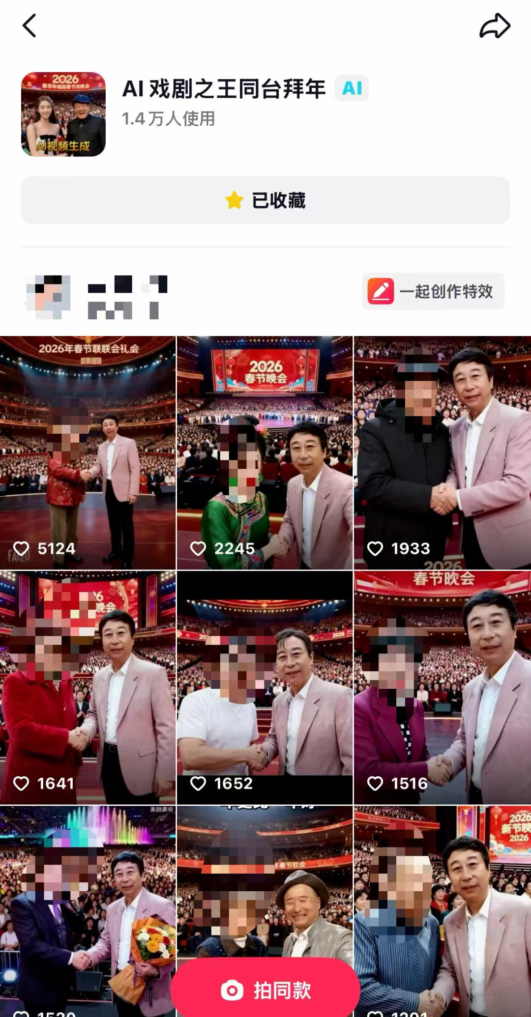 AI拜年的玩法很多,比如萌宠、萌娃通过AI特效模板拜年、跳拜年舞,还有AI生成古风、科幻风拜年大片等等,大部分还是比较有趣也很有创意的,但是一些AI特效模板则从明星名人、影视剧、舞台剧中截取了素材进行二创。