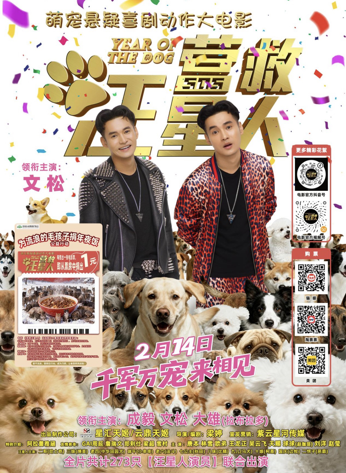 据悉,自2026年2月14日影片上映起至下映日止,每售出一张电影票,片方即从票房中捐出1元(或同等价值物资),用于全国范围内流浪猫狗的救助工作。这项计划旨在为漂泊无依的毛孩子送上一份兼具暖意与希望的“新春年夜饭”,让寒冬里的小生命也能触摸到温柔与善意。