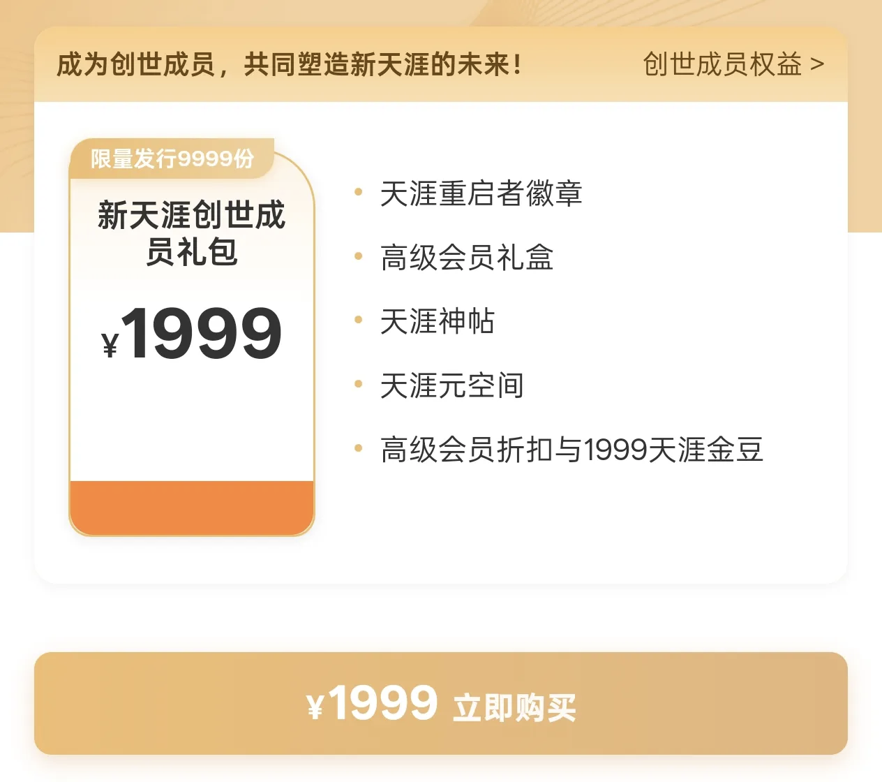 1999元“创始成员”礼包已开售