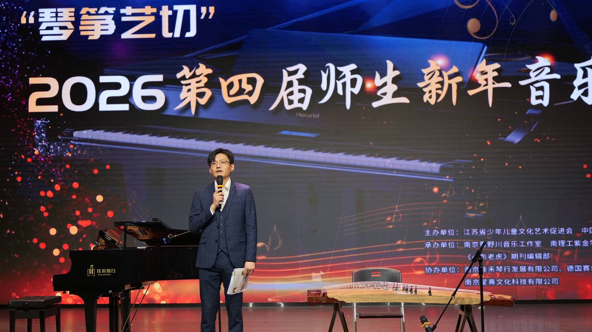 “琴筝艺切传薪火,桃李芬芳贺新春”。2026年2月7日晚,在新春佳节到来之际,由江苏省少年儿童文化艺术促进会、中国国际文艺家协会指导主办,南京曹野川音乐工作室、南理工紫金学院“汇铭志”艺教中心、《小布老虎》期刊编辑部承办,南京佳禾琴行发展有限公司、南京星熹文化科技有限公司等单位共同协办的“琴筝艺切”2026第四届师生音乐会在南京建邺区文化馆剧场举行。