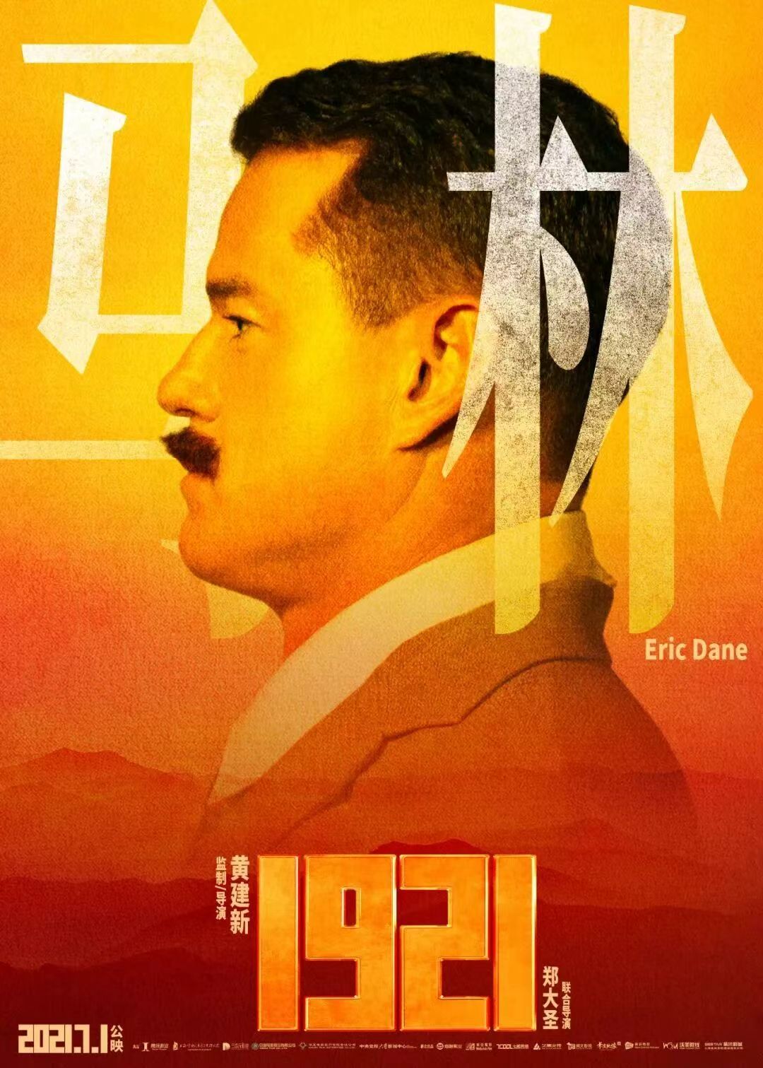 2021年,埃里克·迪恩出演了黄建新、郑大圣导演电影《1921》中马林一角,2020年他在个人社交平台上海曾兴奋分享过自己在中国拍戏的消息。埃里克长相与马林有几分神似,在电影中,马林受列宁委托在1921年抵达上海,旨在促进中国共产党建立,埃里克饰演的马林形象获得了顾问团队的认可,认为其气质符合角色设定。