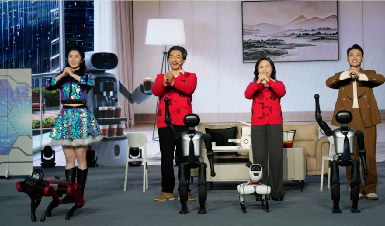 广东卫视在正月初三来了一场首届人机协同春晚,把“未来我们如何与机器人相处”这一时代命题,融入舞台作品,让机器人参与“共创”,整台晚会,人类与智能机器人全流程协同,小品节目也不例外,《2026团圆年》中儿子带了个“特殊”女友回家过年,通过一连串啼笑皆非的误会提出当技术能模拟一切,人类最珍贵的东西究竟是什么的灵魂一问。
