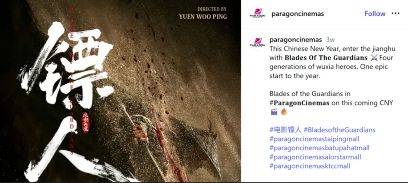 有意思的是,和“武侠”一样,“江湖”也开始被音译了。记者从一些海外网友发布的信息看到,《镖人》的英译名为“Blades of the Guardians”,不少国外影院宣传《镖人》时写道:“This Chinese New Year, enter the jianghu with Blades of the Guardians。”意思是:“这个春节,跟随《镖人》进入’jianghu’。”