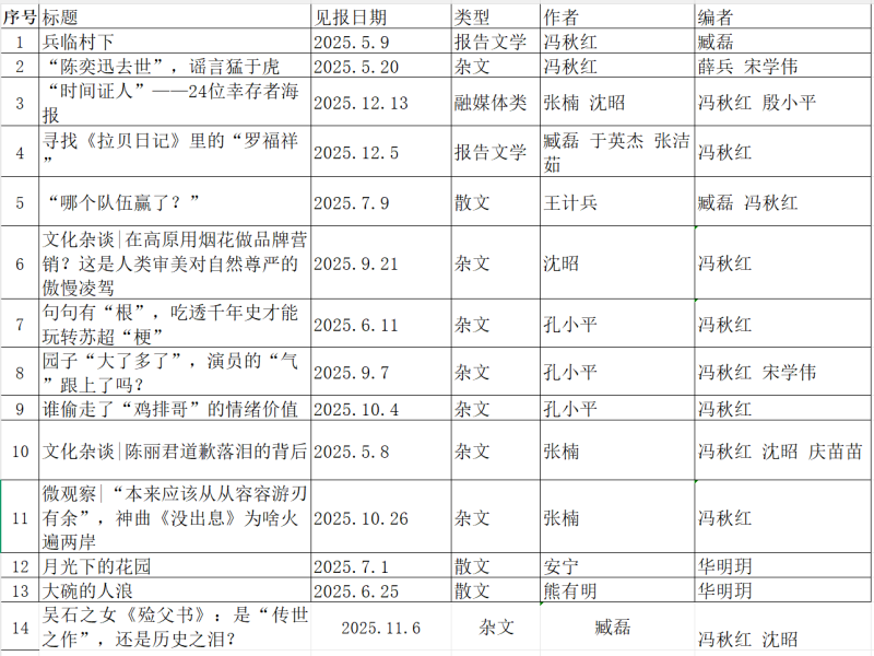 附:扬子晚报参评2025年度江苏省报纸副刊好作品篇目