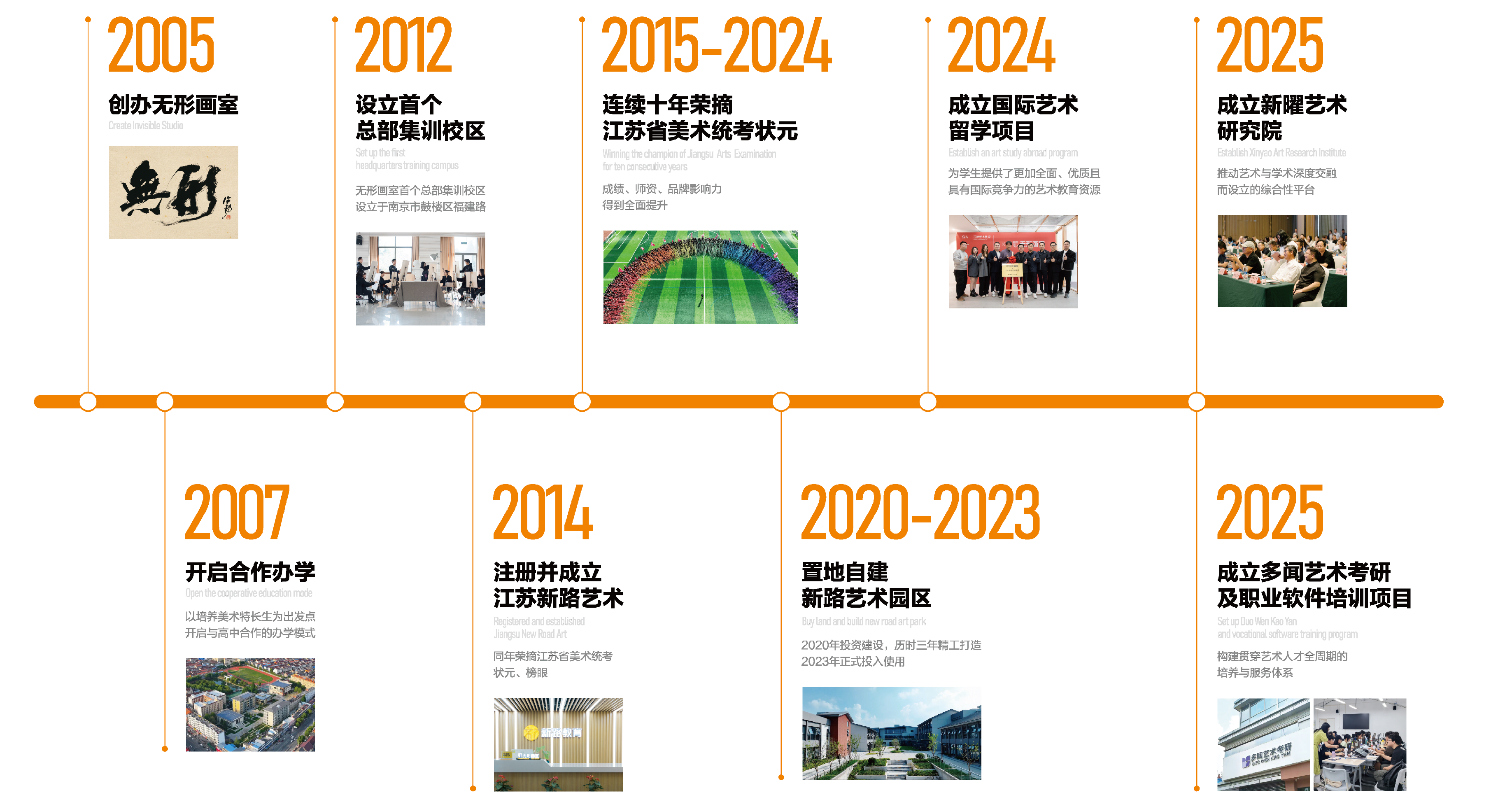2005年,无形画室在南京诞生,这是品牌梦想的起点,也是江苏新路艺术核心品牌的雏形。创立之初,画室便确立了清晰的发展方向:以培养美术特长生为核心,开启与高中的合作办学模式,迅速在南京崭露头角。