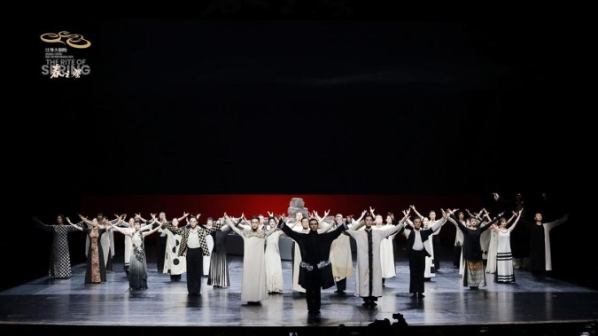 舞台上,三角形旋转平台如破浪船头,油纸伞、折扇、书简等东方意象与现代音乐交融,江南乡愁如月光般流淌。观众既能感受到百年前青年穿行于塞纳河畔咖啡馆与艺术沙龙的身影,也能体察到他们在古典与先锋交锋中寻找民族艺术表达方式的精神历程。将《春之祭》作为一个时间的坐标,看向它所开启的那个时代,看向被那扇大门吸引的中国面孔。在东西方的激荡中,他们寻得了自我的坐标;而今天,这些先驱的身影,又在当代舞台上焕发新生。