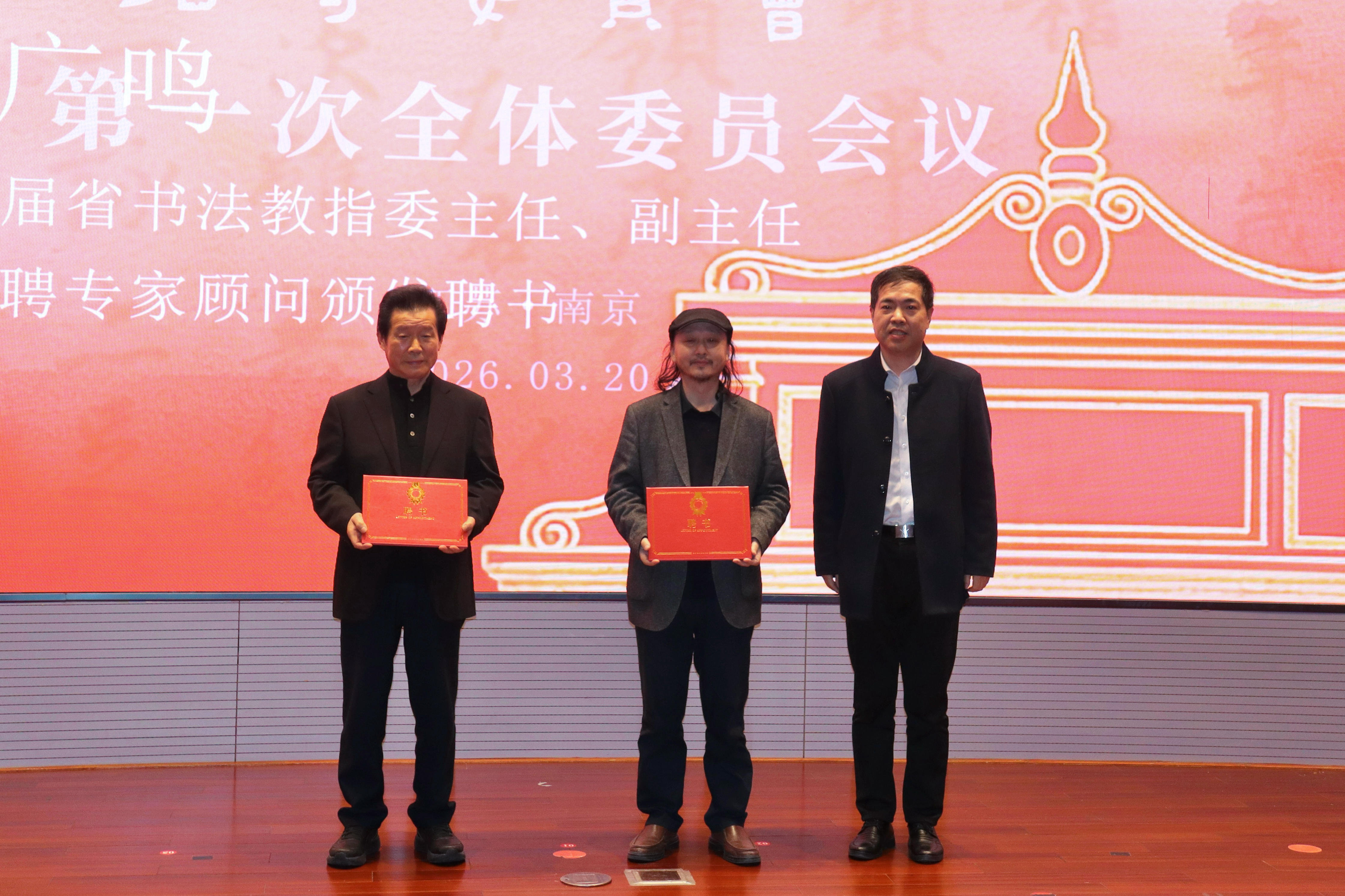 2026年3月20日下午,江苏省书法教育教学指导委员会(以下简称省书法教指委)第一次全体委员会议在南京艺术学院美术馆一楼报告厅隆重举行。会议由省教育厅体卫艺处处长李海宁主持。