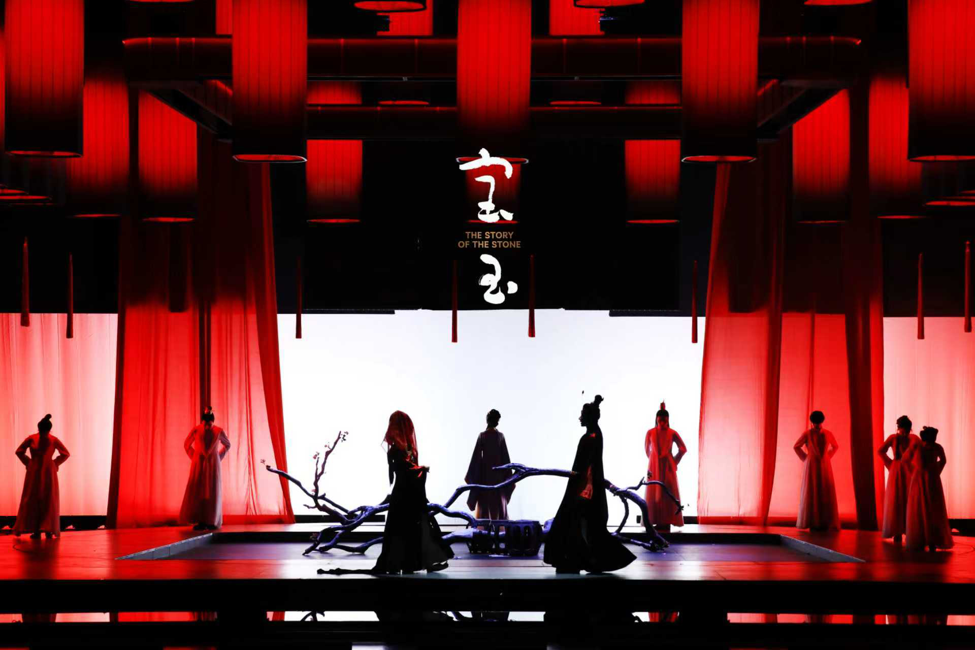 灯光设计以写意手法点睛:王熙凤之死时骤暗的孤灯、黛玉葬花时清冷的月白、大婚场景中刺目的猩红,将色彩化为情感语言。随着剧情推进,当红颜凋零、家族倾覆,象征生命的灯笼逐盏熄灭,唯留一束孤光映照命运苍凉。舞台的雾气氤氲、帷幔的流动写意,配合光影水墨般的投射技法,将原著中“满纸荒唐言,一把辛酸泪”的悲怆化作视觉奇观。
