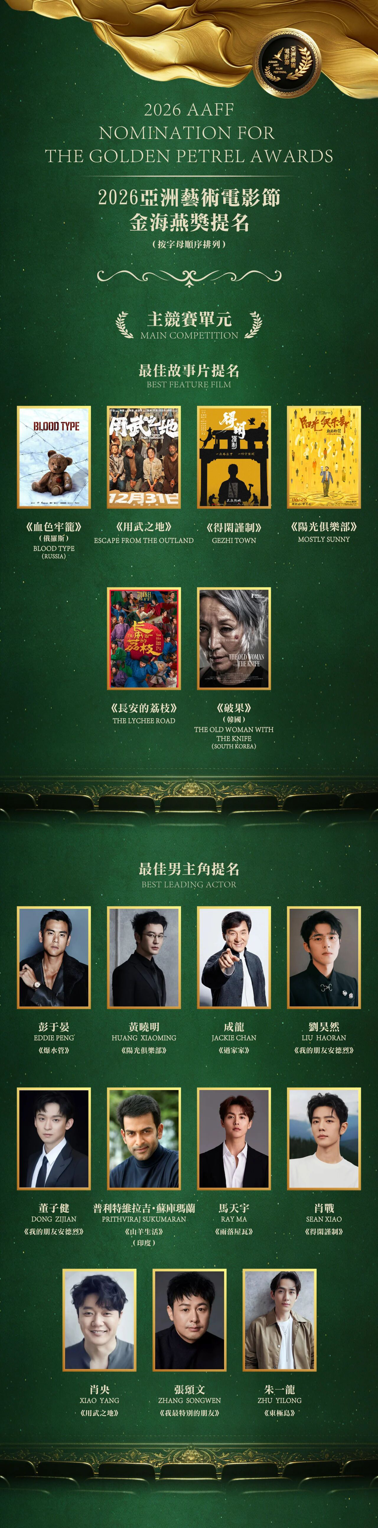 肖战凭“莫得闲”提名最佳男主,2026亚洲电影艺术节公布提名名单