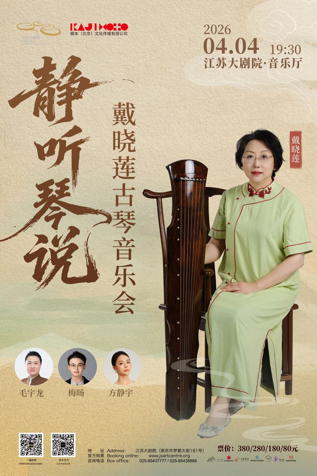 据悉,本场音乐会阵容坚实,戴晓莲教授深得广陵派精髓,技艺精湛、风格醇正,三位青年艺术家也是琴坛新锐,各具风采。曲目编排匠心独运,有古琴三重奏《杏坛》、古琴独奏《秋鸿》,还有古琴二重奏《G弦上的咏叹调》,古琴独奏《楚歌》等,从独奏的空灵意境到合奏的协同共鸣,从传统古曲的原汁原味到跨界改编的新意盎然,这场音乐会以丝桐为媒,让千年清音与当代审美碰撞交融,铺展跨越时空的听觉长卷,邀君共赴这场雅致的听觉诗旅。